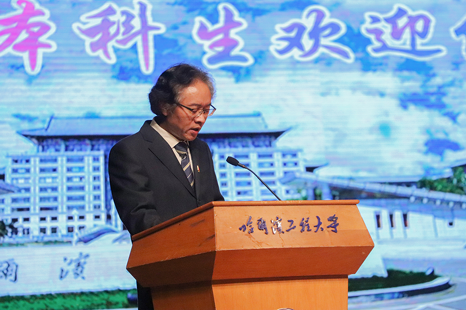 杨武作为教师代表进行发言,他建议新生们要以积极的心态,适应新环境,融入新氛围,投入新生活,树立远大的目标,勤奋学习,要学会成为一个健全的人,一个具有伟大人格的人。同时,希望同学们毕业后要积极投身国防科工建设,成为奋力推进新时代中国特色社会主义事业发展的栋梁之才。