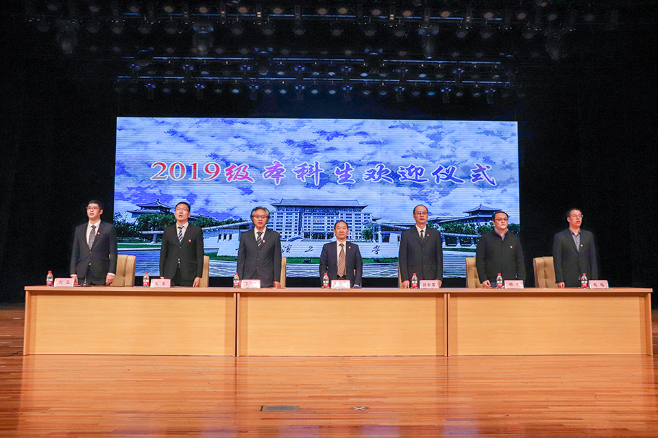 最后,全体师生起立奏唱校歌,学院2019级本科生入学欢迎仪式在激昂的歌声中落幕。