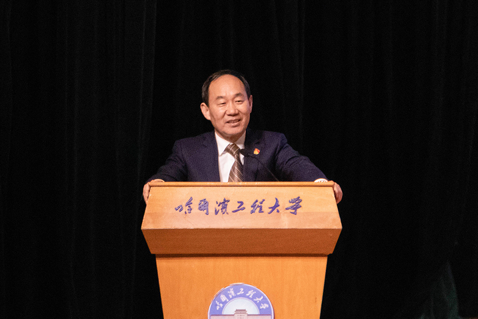 随后,张志俭副校长为学生代表佩戴校徽,哈尔滨工程大学校徽反映了学校的办学特色,美观大方、庄重高雅,更象征着我们一生永不磨灭的军工精神和工程学子身份,每一位同学从戴起校徽那一刻起,便要终身牢记“大工至善、大学至真”的校训,在接下来的人生征途中不忘初心,牢记使命,努力成为又红又专,可靠顶用的社会主义建设者和接班人。