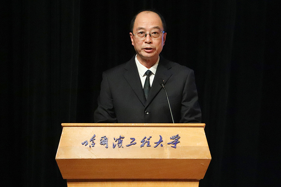 随后,张志俭副校长为学生代表佩戴校徽,哈尔滨工程大学校徽反映了学校的办学特色,美观大方、庄重高雅,更象征着我们一生永不磨灭的军工精神和工程学子身份,每一位同学从戴起校徽那一刻起,便要终身牢记“大工至善、大学至真”的校训,在接下来的人生征途中不忘初心,牢记使命,努力成为又红又专,可靠顶用的社会主义建设者和接班人。