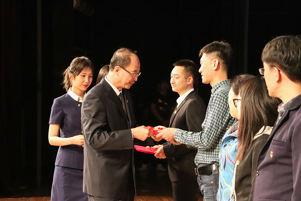 吕春雷书记宣读《关于聘任史长亭等14名教师为2019级本科生班主任的决定》,并为2019级本科生班主任颁发聘书。