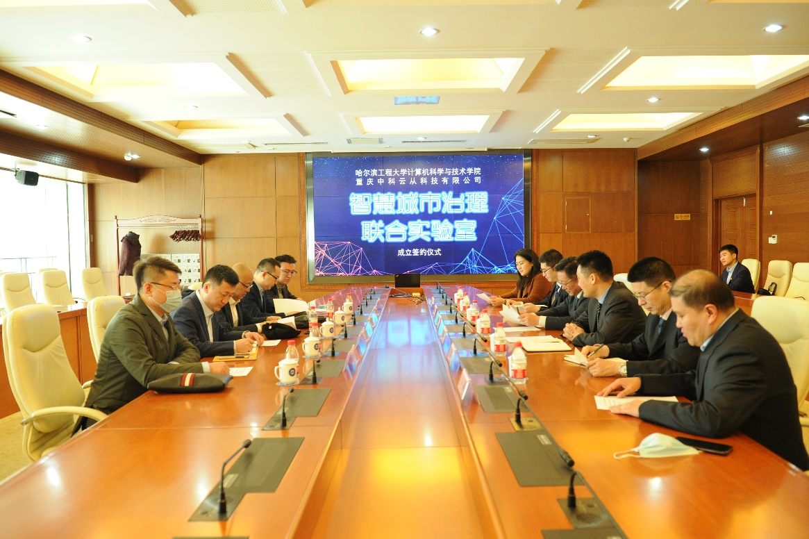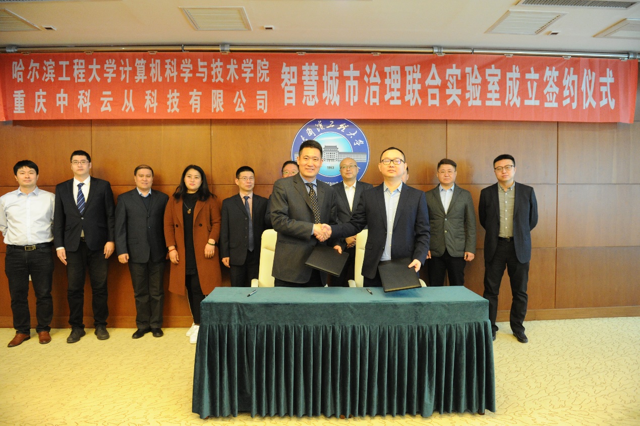 2021年4月14日,重庆中科云从科技有限公司与太阳集团tyc4633共同参与的“智慧城市治理联合实验室”成立签约仪式于校启航活动中心贵宾会议室举行。云从科技集团智慧治理BG总经理李夏风、云从科技集团智慧治理重大项目部总经理代亮、云从科技集团智慧治理黑龙江分公司总经理王海亮、云从科技集团智慧治理重大项目部AIOT高级经理刘勇,太阳集团tyc4633副校长韩端峰、太阳集团tyc4633院长蔡成涛、副书记刘正、副院长冯光升、王巍、董宇欣及教师代表出席仪式,仪式由王巍主持。