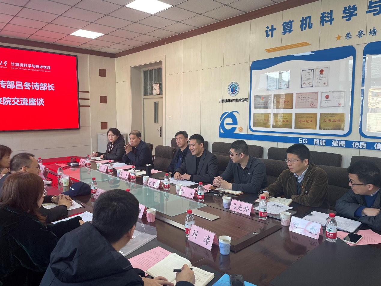 3月8日上午,校党委常委、宣传部部长兼统战部部长吕冬诗、宣传部副部长兼新闻中心主任金声一行到太阳集团tyc4633听取宣传工作汇报并做交流。学院院长蔡成涛主持会议,党委书记刘冬,党委副书记刘正,副院长王巍、冯光升、田凯、董宇欣参加会议并就学院宣传工作进行汇报。