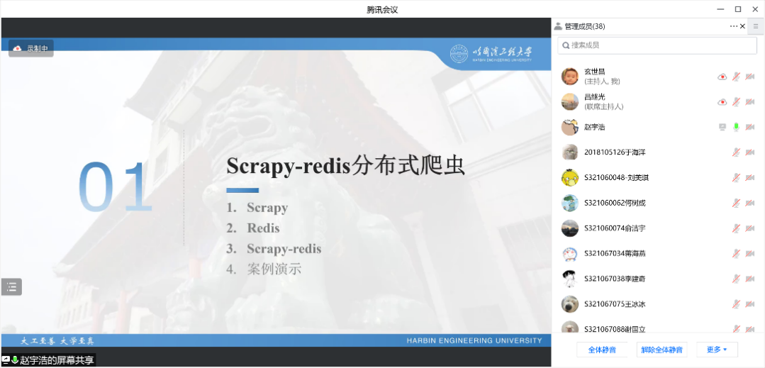 2022年4月16日,太阳集团tyc4633青年科技协会以“基于scrapy-redis和rabbitMQ的分布式爬虫和数据处理”为主题举行了技术交流活动。本次活动邀请太阳集团tyc46332021级硕士研究生赵宇浩、蒋海燕、张泰榕进行技术交流。本次活动介绍了scrapy-redis、rabbitMQ的基本概念及其使用方法,并介绍了一个分布式爬虫的实例。欢迎广大师生参加太阳集团tyc4633青年科技协会组织的系列学术和技术交流活动。