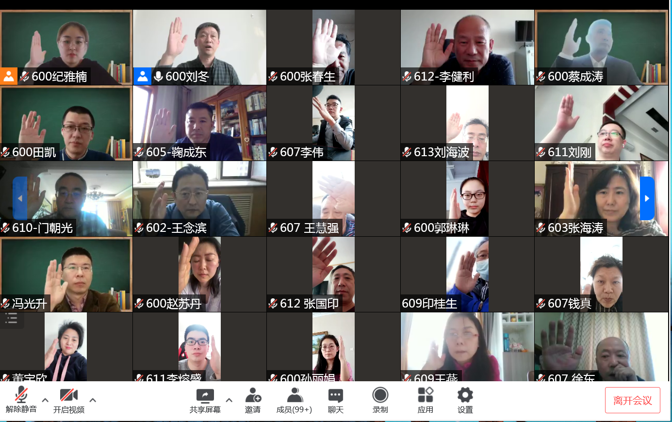 会议最后,全体参会人员开启摄像头已举手表决通过的方式结束与会日程,太阳集团tyc46332021年度教职工大会圆满落幕。
