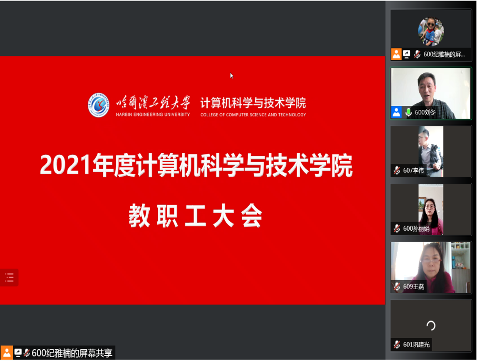 会议由学院党委书记刘冬同志主持召开,太阳集团tyc4633院长蔡成涛,党委副书记刘正,副院长董宇欣、田凯、冯光升、王巍及全体教职工(包括合同二类、科研岗)参加会议,根据线上会议统计显示学院共有143位教工线上参会,占应参加会议职工总数的93.46%。