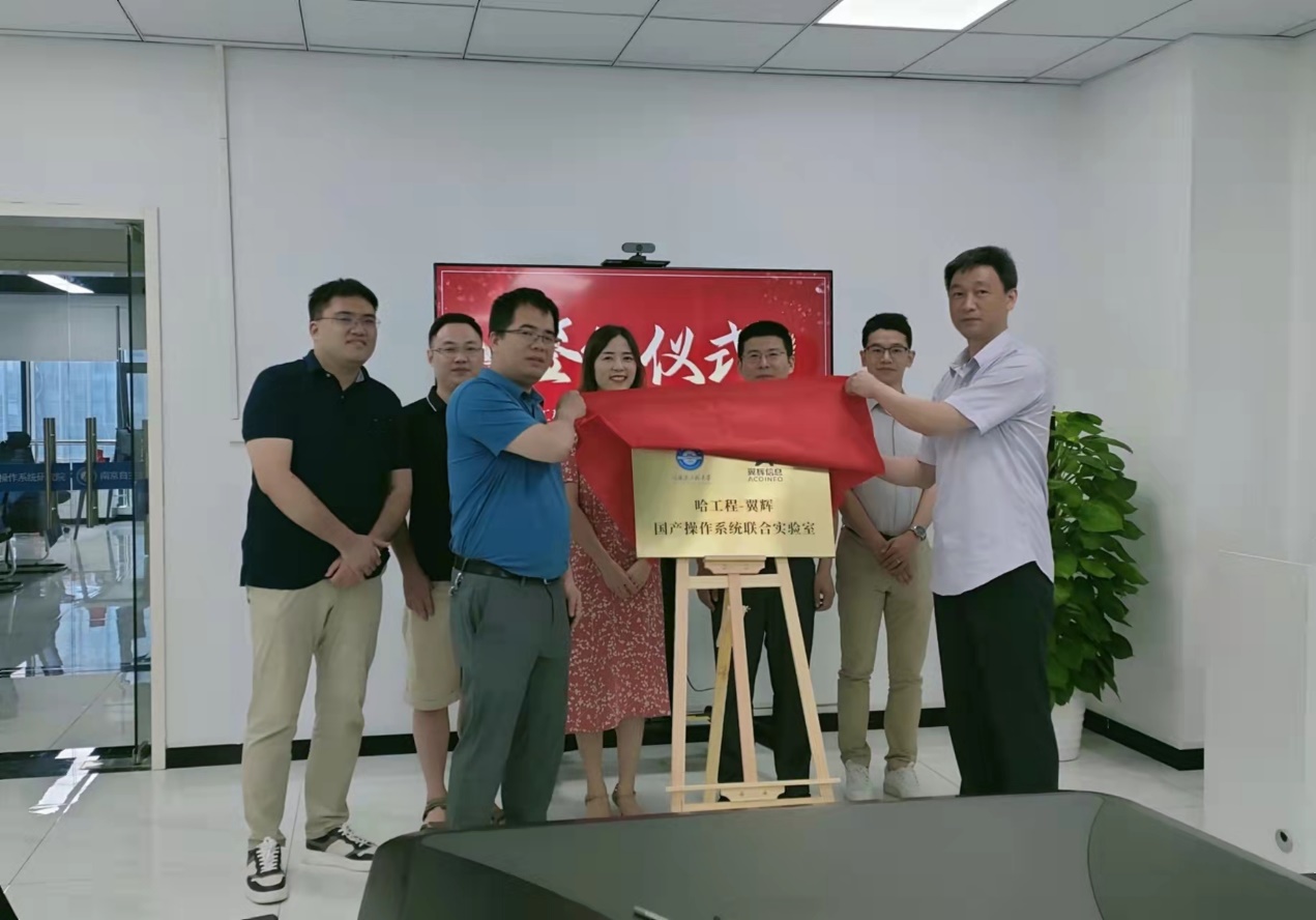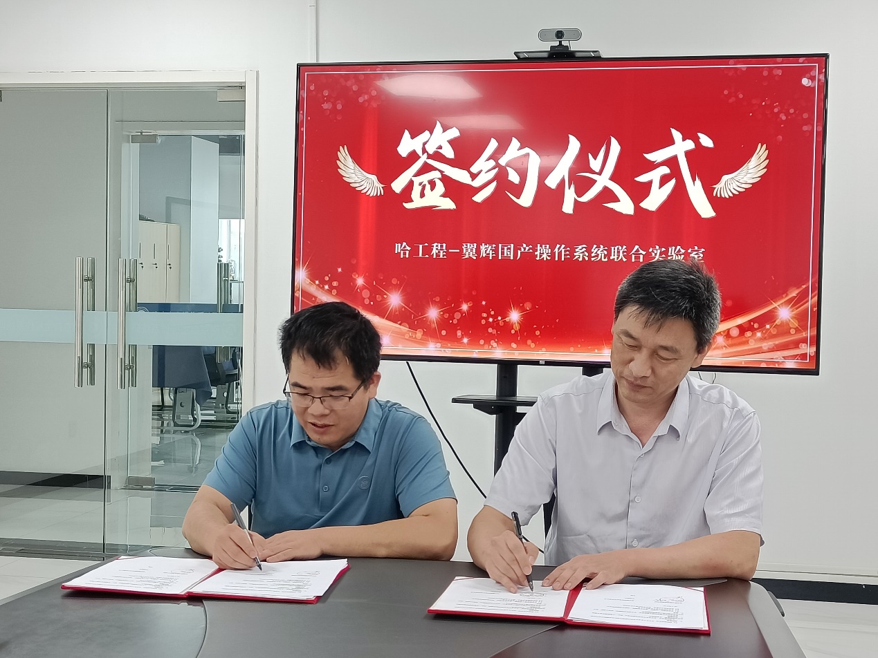 最后刘冬书记与李孝成副总经理共同签署了“哈工程-翼辉”国产操作系统联合实验室合作协议书,并为联合实验室正式揭牌。