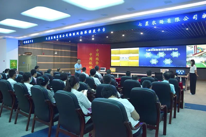 在七星农场有限公司机关七楼会议室,调研组与陪同人员围绕空天地一体化遥感监测、大数据分析处理、信息互联互通、病虫草害识别管控、叶龄识别等方面进行热烈讨论。双方表示,希望以此次调研为契机,集合七星资源优势和院校人才优势,找出数字农业发展过程中的短板和瓶颈,加快数字农业基础设施升级改造,加快农业全产业链数字化转型和农业信息化、数字化的应用,把论文写在大地上,成果留在农户家,有效将北大荒先进的数字农业发展模式复制到地方实际应用中,通过数字化赋能推进七星农业产业转型升级,共同为北大荒“藏粮于技” “藏粮于地”战略提供有力支撑。