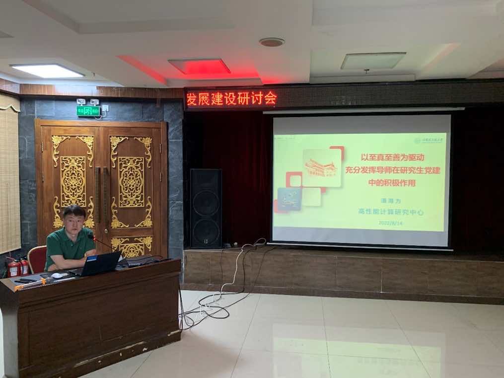 会上,计算机科学教学与研究中心负责人吴艳霞、软件工程教学与研究中心负责人张立国、网络技术与信息安全教学与研究中心负责人苘大鹏、数据科学教学与研究中心负责人王红滨、计算机教育与实验创新中心负责人刘书勇、高性能计算研究中心负责人王宇华分别以《知行合一,提升人才培养能力——基层学术组织建设思路》《科教融合,从数据驱动到智能创新,建设团结务实的基层学术组织》《以“人才培养”为根本——研究型大学基层学术组织建设途径》《紧扣人才培养,强化学术治理》《以“立德树人”的使命浅谈基层学术组织的担当与建设思路》《固初心,明使命,建设“研究型、服务型”高性能计算研究中心》为题进行基层学术组织建设思路汇报交流。同时,由计算机科学教学与研究中心党支部书记付岩、软件工程教学与研究中心党支部书记王兴梅、网络技术与信息安全教学与研究中心党支部书记吕宏武、数据科学教学与研究中心党支部书记杨悦、计算机教育与实验创新中心党支部副书记李超、高性能计算研究中心党支部书记潘海为以《意识引领、真抓实干,促进党建与业务深度融合》《以党建激活组织活力,推进工作高质量发展》《坚持“立德树人”原则,促进网络空间安全学科的建设工作》《“党建+”下基层学术组织协同育人模式探索》《提高思想站位、强化组织凝聚力,推进教研体系化发展》《以至真至善为驱动,充分发挥导师在研究生党建中的积极作用》为题进行党支部党建工作思路汇报交流。会后,以小组为单位开展讨论交流。