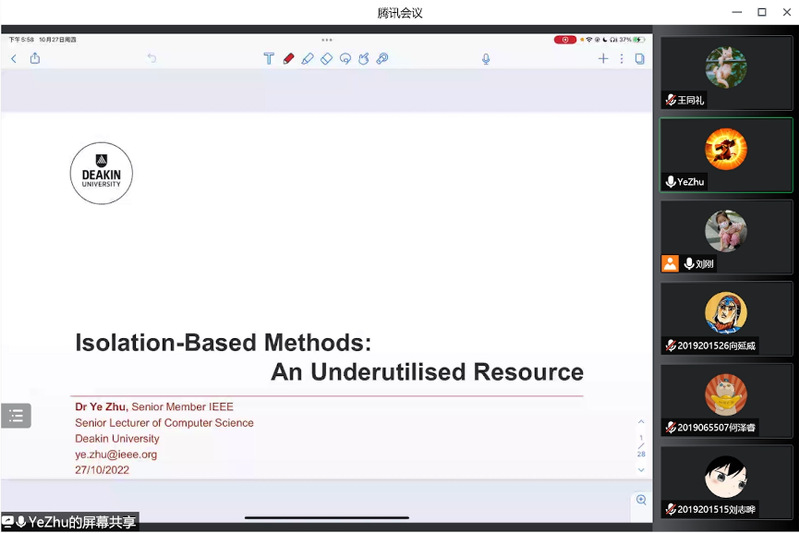 2022年10月27日,太阳集团tyc4633举行了智汇论坛2022年第四期(总第八期)活动。本次活动邀请澳大利亚迪肯大学信息技术学院高级讲师Ye Zhu以“孤立核函数的研究与展望”为题作专题讲座。