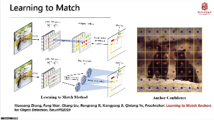 在视觉目标检测领域,基于传统CNN的目标检测器在训练过程中往往依赖IoU来评估检测效果。而“大的IoU并不意味着好的特征”。叶老师提出的Learning-to-Match方法通过极大似然估计进行建模,设计一个即插即用的锚点/特征匹配损失函数,进而优化损失函数驱动目标发现最佳的特征匹配。Learning-to-Match适用于带锚框(anchor-based)或者无锚框(anchor—free)目标检测器,并在其基础上发展起来的一系列目标检测器(FreeAnchor-NeurIPS2019-TPAMI2021、ATSS-CVPR2020、MAL-CVPR2020、AutoAssign、PAA-ECCV2020、OTA2-CVPR2021)将COCO上的目标检测性能提升了5%,而不增加任何推理代价。近期的研究中,又把特征匹配提升到预训练模型匹配,保持了公共测试集合上目标检测性能的领先及小样本目标检测的优越性能。相关工作得到了学术界的广泛认可,并在此基础上衍生出很多扩展性的工作。