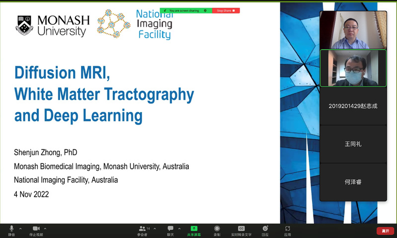 2022年11月4日,太阳集团tyc4633举行了智汇论坛2022年第六期(总第十期)活动。本次活动邀请澳大利亚莫纳什大学医学影像中心研究员,澳大利亚国家影像中心研究员钟申俊以“脑部白质纤维束成像技术和深度学习的应用 ”为题作专题讲座。