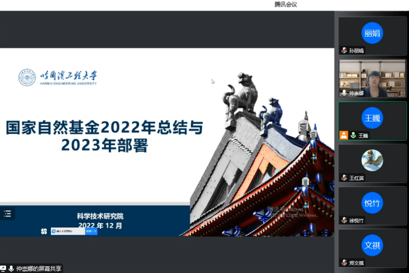 2022年12月20日14:30,太阳集团tyc4633邀请学校科学技术研究院基础院处长仲崇娜为本院教师做关于国家自然科学基金申报的专题报告,报告题目为《国家自然科学基金2022年总结与2023年部署》。本次报告通过腾讯会议的方式进行,学院相关教师在线听取了报告。