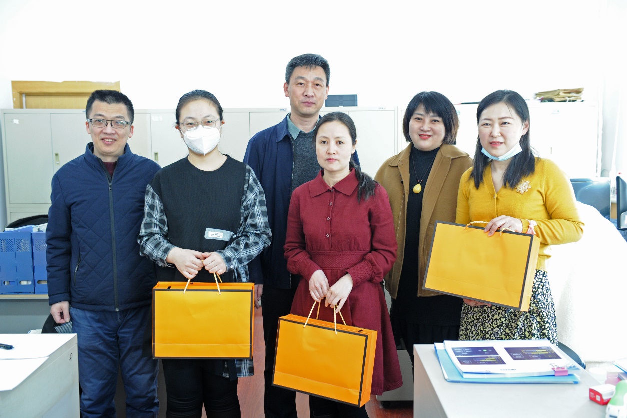 刘冬一行为每位辛勤工作的女教工送上了一份精美节日礼物,详细了解大家工作和生活的情况,听取她们的心声和意见,向她们致以节日的祝福和感谢,鼓励她们在今后的工作和生活中继续发挥自己的才能和作用。刘书记表示,近两年来,我们面临着疫情的严峻挑战,学院女教职工们以坚韧不拔的意志和无私奉献的精神,为学院疫情防控和教育教学工作的顺利开展做出了不懈的努力和贡献。在这个特殊的节日里,对所有为学院发展付出辛劳和汗水的女性教职工致以最崇高的敬意。在教育教学一线、科研创新中、行政管理中,女教职工以其勤奋、才华和专业能力,展现出了非凡的魅力和实力。希望广大女教职工不忘初心,继续保持良好的工作状态和精神面貌,在今后的工作中,不断提高自身素质,立足岗位工作实际,积极践行为党育人、为国育才的初心使命,落实好立德树人根本任务,主动奋进发展新视野,不断塑造发展新动能,以争先创优、追梦奔跑的昂扬姿态,在学院未来发展事业新征程上贡献巾帼力量、展示巾帼风采。