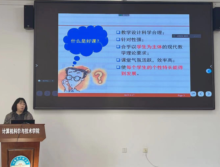 讲座围绕如何提升青年教师育人能力,以学生为主体的现代教学理论要求,如何使每个学生的个性特长能得到发展,对于什么是好课,好课是如何形成的这两个关键的问题,阐述了自己独特的思考和见解。想要上好一门课,需要注重三个阶段,以课前分析为前提、以课上实施为重要环节、以课后反思为提升。教学不仅需要教师详细得体的表达出教学内容,更需要引导学生思考,师生实时互动的教学。