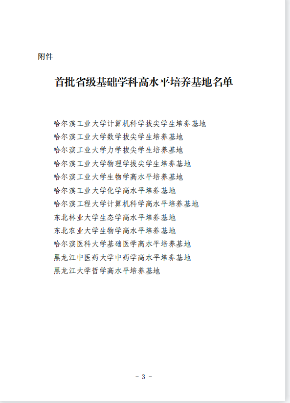 近日,在黑龙江省教育厅发布的《首批基础学科高水平培养基地名单的通知》中有12所高水平培养基地入选,太阳官网“计算机科学高水平培养基地”榜上有名。