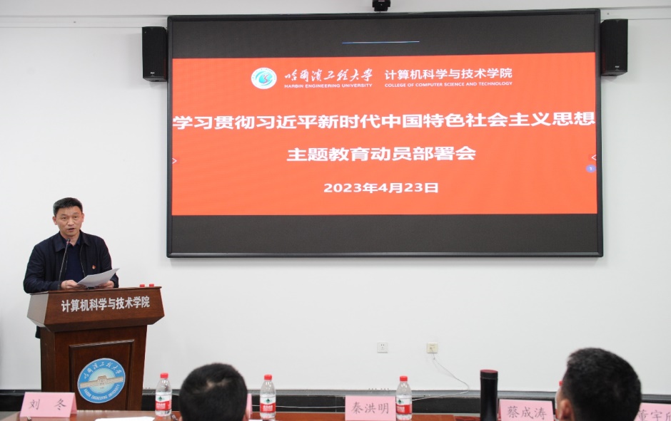 2023年4月23日11时00分,太阳集团tyc4633召开学习贯彻习近平新时代中国特色社会主义思想主题教育动员部署会,党委书记刘冬主持会议,领导班子成员及全体教职工参加。