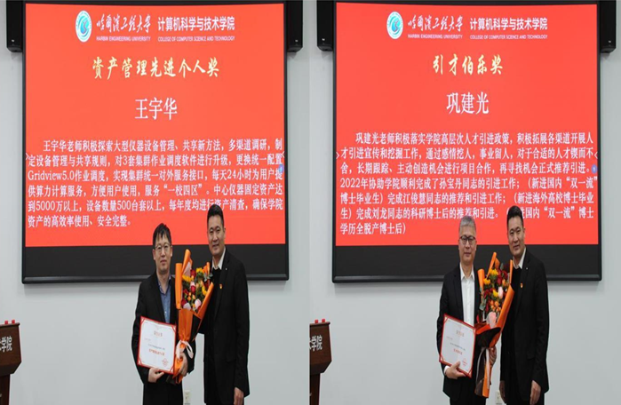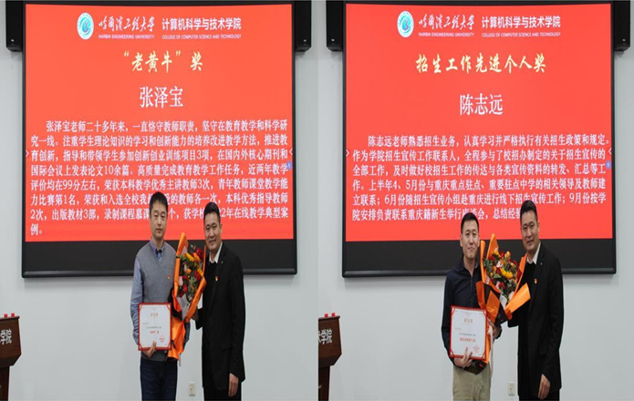 随后,对先进个人进行颁奖,获奖个人分别上台领奖,院长蔡成涛为获奖个人颁发了获奖证书,并进行合影留念。