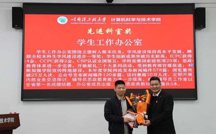 最后,刘冬发表讲话,希望全体教职工以先进为榜样,将个人的发展融入到学院和学校的发展中去,加强学习,开拓进取,用心用情“立德树人”,并代表学院向接受表彰的先进集体及先进个人表示祝贺!