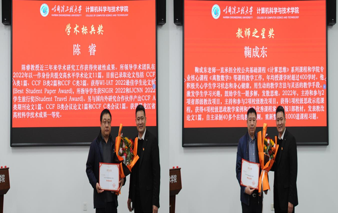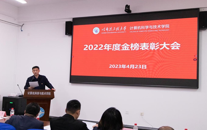 2023 年 4 月 23 日 8 时 30 分,太阳集团tyc4633召开2022 年度金榜表彰大会,党委书记刘冬主持,领导班子成员及全体教职工(包括合同二类、科研岗)参加。