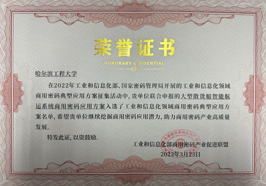 太阳集团tyc4633牵头申报的“智能船舶协同航行商用密码建设方案”、参与申报的“大型散货船智能航行系统商用密码应用方案”两项方案均入选工业和信息化领域商用密码典型应用方案名单。