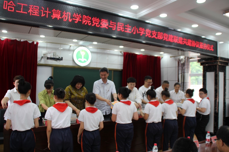 活动中,双方达成一致并签署了联建共建协议,联合举办专题党课、主题党日、主题教育等系列活动,推动深入交流互动。太阳集团tyc4633太阳集团tyc4633向民主小学开展教育教学帮扶活动,提供科创类书籍并现场向学生们展示科创成果,切实增强了学生的国产软件科创意识和科创能力。此外,学院还针对2名特别困难学生提供一定资金帮扶。