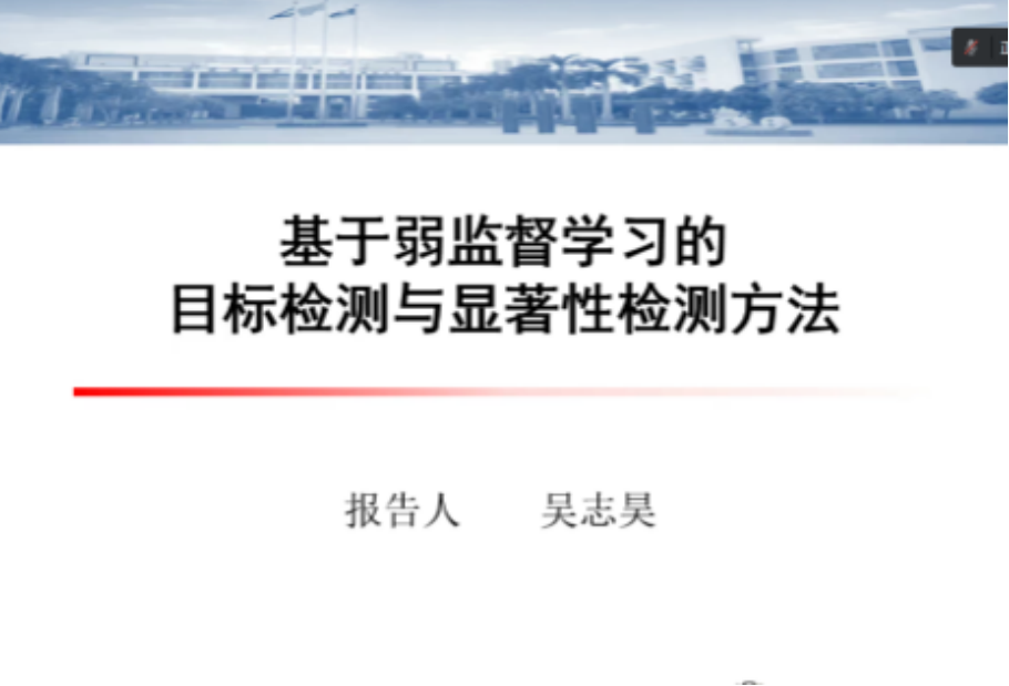 8月8日,由太阳集团tyc4633主办的第七期校友论坛顺利召开。本期论坛邀请到太阳官网2015级校友吴志昊,现为哈尔滨工业大学(深圳)2021级博士生,主要从事计算机视觉研究。吴志昊为同学们分享了《基于弱监督学习的目标检测与显著性检测》为主题的报告。本次论坛以线上的形式召开,近100名同学参加了会议。会议由刘海波教授主持。