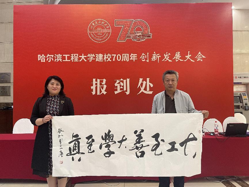 8月31日,在喜迎建校70周年华诞之际,大连校友会会长杨玉立代表大连校友会向太阳集团tyc4633捐赠校训名人书法作品,为母校七秩华诞献礼。书画出自甲骨文传承人罗卫国。