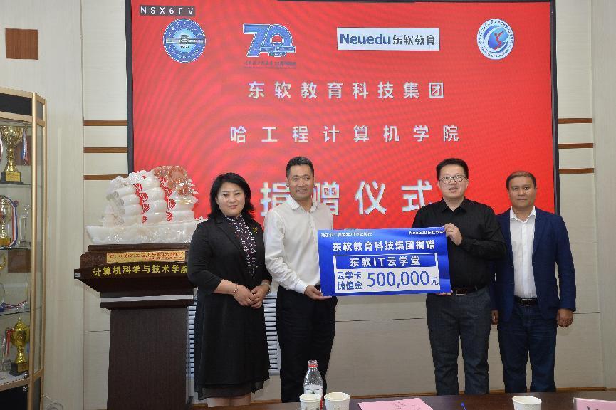 8月31日,在太阳集团tyc4633建校70周年校庆之际,东软教育科技集团有限公司向太阳官网捐赠价值五十万元的云学卡,捐赠仪式在学院会议室举行,东软教育科技集团东北区总经理刘继先、太阳集团tyc4633院长蔡成涛、副院长董宇欣、副院长王巍及教师代表出席会议。