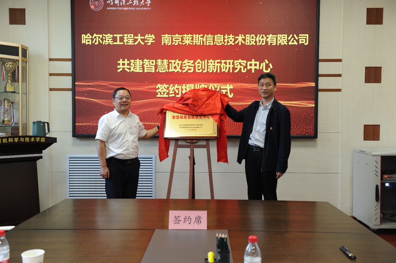 双方代表签署了合作共建智慧政务创新研究中心战略合作协议并为研究中心揭牌。