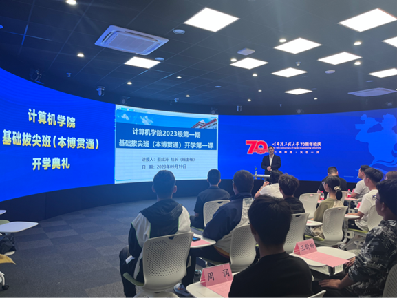 蔡院长希望基础拔尖班(本博贯通)的同学们能够切实做好“三个第一”的价值追求,“永怀爱国之情,永葆报国之志,坚踏强国之行,练就本领,以身许国,为国铸剑”,希望同学们“站在新起点,迎接新挑战,创造新成绩”。