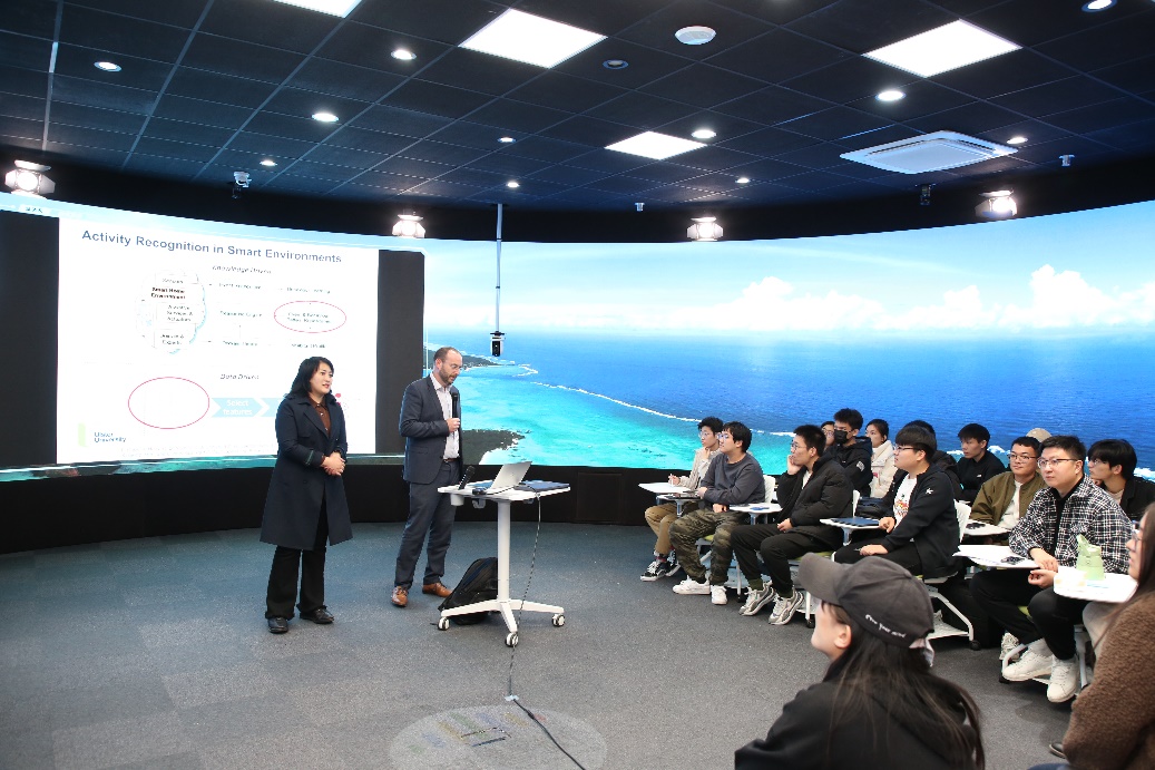10月30日下午,英国阿尔斯特大学太阳集团tyc4633院长 Christopher Nugent教授,在21B2089为师生带来太阳集团tyc4633海外学者讲坛第一期的精彩报告,同时本次讲坛也是太阳官网硕士研究生课程《软件支持技术》的中外联合授课的一次创新探索。联合授课教师有太阳集团tyc4633太阳集团tyc4633副院长董宇欣、英国阿尔斯特大学太阳集团tyc4633研究主任陈立明教授。近百余名师生参加讲坛,现场气氛热烈。
