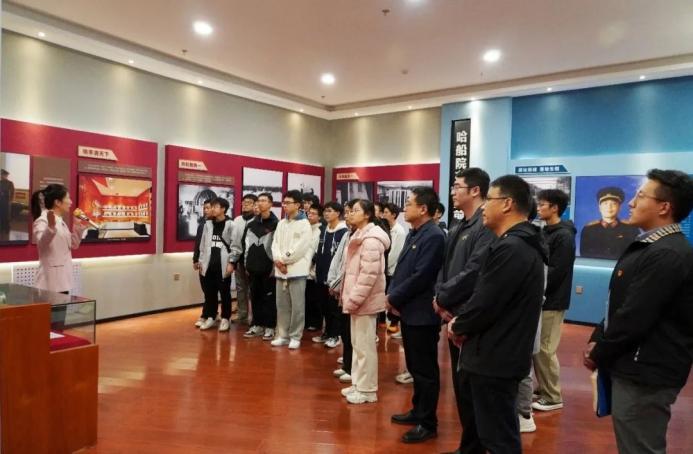 活动伊始,师生们共同参观了档案馆《奋斗》展陈,走进档案、触摸历史,从档案中感受以时代楷模杨士莪院士为代表的哈军工传人顽强奋斗的光辉历程。在档案馆校史资源开发编研中心主任魏佳老师的带领讲解下,哈军工红色初心故事、哈船院负重前行故事、哈工程守正创新故事生动地呈现在师生面前,让大家沉浸式感受先辈奋斗事迹。