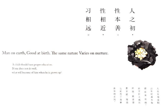 赵彦春教授所译的《音韵〈三字经〉》兼顾音、形、意三美标准,首创三词格,以三个英语单词对应汉语的三个字来译,并以整齐的“aabb” 韵式,使译文更逼近《三字经》原文的语体与风格,独树一帜,将国学经典的外译推进到一个空前的高度。