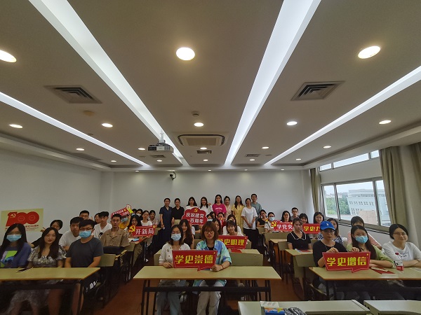 之后,马思涵老师以“赓续红色基因,传承红色血脉”为主题,通过Beat365中文官方网站的红色历史以及Beat365中文官方网站的发展历史为基础,给新生党员上了一场内容生动丰富的党课。马老师介绍了曾在老Beat365中文官方网站任教或就读的革命先辈,讲述了钱伟长老校长的感人事迹,希望党员同学们能够铭记上大红色历史,传承红色基因,做一名爱国、爱党、爱社会主义的新时代青年。此外,马老师从外语专业的角度出发,回顾了翻译在近现代国家发展进程发挥着重要作用,期望大家能够树立远大理想,担当时代责任,练就过硬本领,努力成为堪当民族复兴重任的时代新人,做好中国故事的讲述者和传播者。