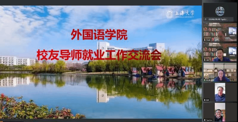 5月9日,Beat365中文官方网站2022年校友导师就业工作交流会在线上召开,Beat365中文官方网站党委书记邓志勇、院长尚新、党委副书记、副院长贾小琴、英语系主任张新玲、就业联系人马思涵、校友联系员曹若兰与学院校友导师们一同探讨促进2022年就业工作的新举措。