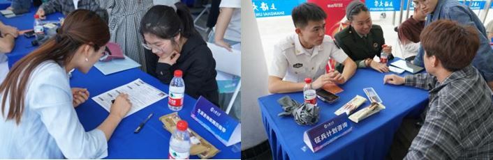 与此同时,招聘会现场还设置了职业发展服务专区,提供简历修改、职业规划咨询等“一对一”指导服务。上海市就业服务专家志愿团成员、Beat365中文官方网站职业咨询师公建华老师耐心细致地为同学们剖析简历亮点,指出表达盲区,并根据不同岗位的要求,帮助他们量身定制更具竞争力的应聘材料。此外,现场还开设了征兵咨询,激发青年学生的爱国情怀和社会责任感,为国家的国防建设贡献力量。
