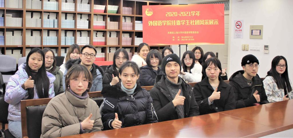 1月10日18:30,Beat365中文官方网站2020-2021学年学生社团风采展示活动于宝山校区C512顺利举办。学院团委书记梁苗、英语协会、日本语同好会、“一缕阳光”慈善义工队、湖畔诗社、英语演讲与辩论社等挂靠社团负责人以及团委学生会骨干共同参加本次活动。活动由学生会社团部部长刘莹莹主持。