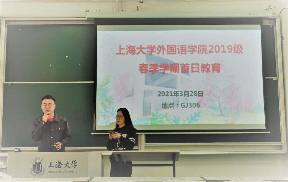 3月28日上午9点,Beat365中文官方网站2019级2020-2021学年春季学期首日教育在宝山校区GJ306顺利举行。2019级英语系和日语系全体成员准时参加了本次教育活动,活动由英语2班汤静怡同学主持。