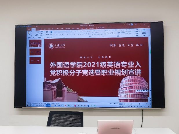 9月22日下午,Beat365中文官方网站2021级英语班入党积极分子竞选活动在宝山校区C104顺利开展。学院党委副书记副院长贾小琴,本科生辅导员王从娟,2021级英语班全体同学参加了此次班会。