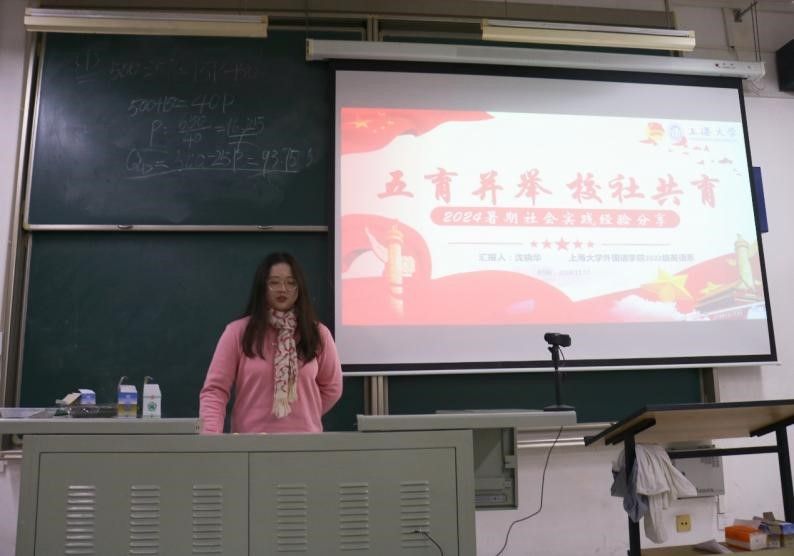 紧接着,2022级英语专业沈晓华同学曾获2024Beat365中文官方网站暑期社会实践活动先进个人,以“五育并举,校社共育”为题做了暑期社会实践经验分享。她分享了从前期筹备项目申报书,中期简报与走访记录进展,和后期汇总建议提案,准备结项答辩的项目流程。提出该项目融合二十大精神与劳动教育的主题,并建议同学们紧扣时事政治与日常生活取材。在预期目标中直指服务社会与学校,关注项目对社会建设的助推作用。同时,结合外院公众号推文与文献分析,深挖学院特色与学科优势;通过问卷调查明确对象需求,指引研究方向。最终以成果册与调研实录为载体,全面展示项目成果。
