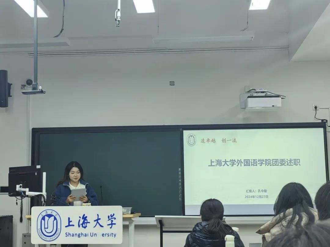 团委副书记孔令璇同学从“强化组织建设、落实从严治团”“坚持思想引领、筑牢信仰根基”“丰富学生活动、激发支部活力”“规划引领、总结为要”四个方面进行述职答辩,提出加强团队建设、增强凝聚力和强化理论武装、丰富活动形式的工作规划。