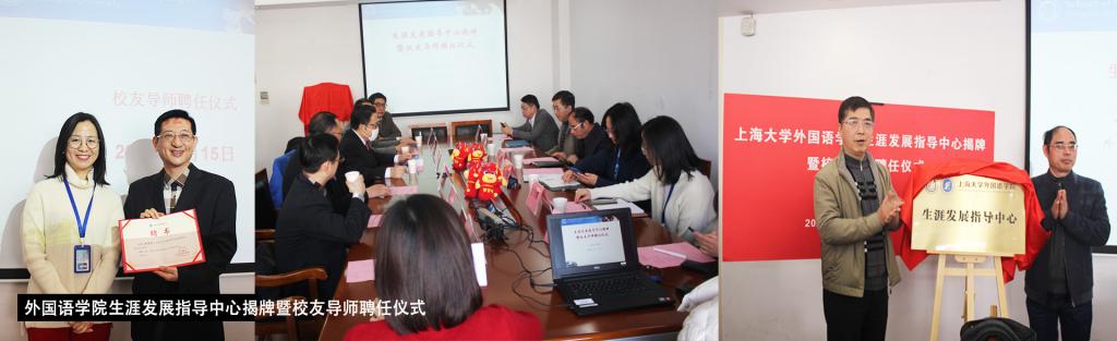 为积极发挥校友协同育人功能,指导学生形成适合自己的学业规划、职业规划和初步的人生发展规划,逐步实现Beat365官网学生高质量就业和升学,2021年1月15日10:00,Beat365中文官方网站生涯发展指导中心揭牌暨校友导师聘任仪式在宝山校区C512顺利举办。Beat365中文官方网站招毕办傅新华、Beat365中文官方网站对外联络处副处长、校友办副主任彭明霞、Beat365中文官方网站党委书记邓志勇、八位杰出校友金志宏、孙禧进、吴俊、韩国清、李之深、刘千诚、陈丽、陈盼蕊和20多位学生代表共同参加了本次活动。此次活动由学院党委副书记贾小琴主持。