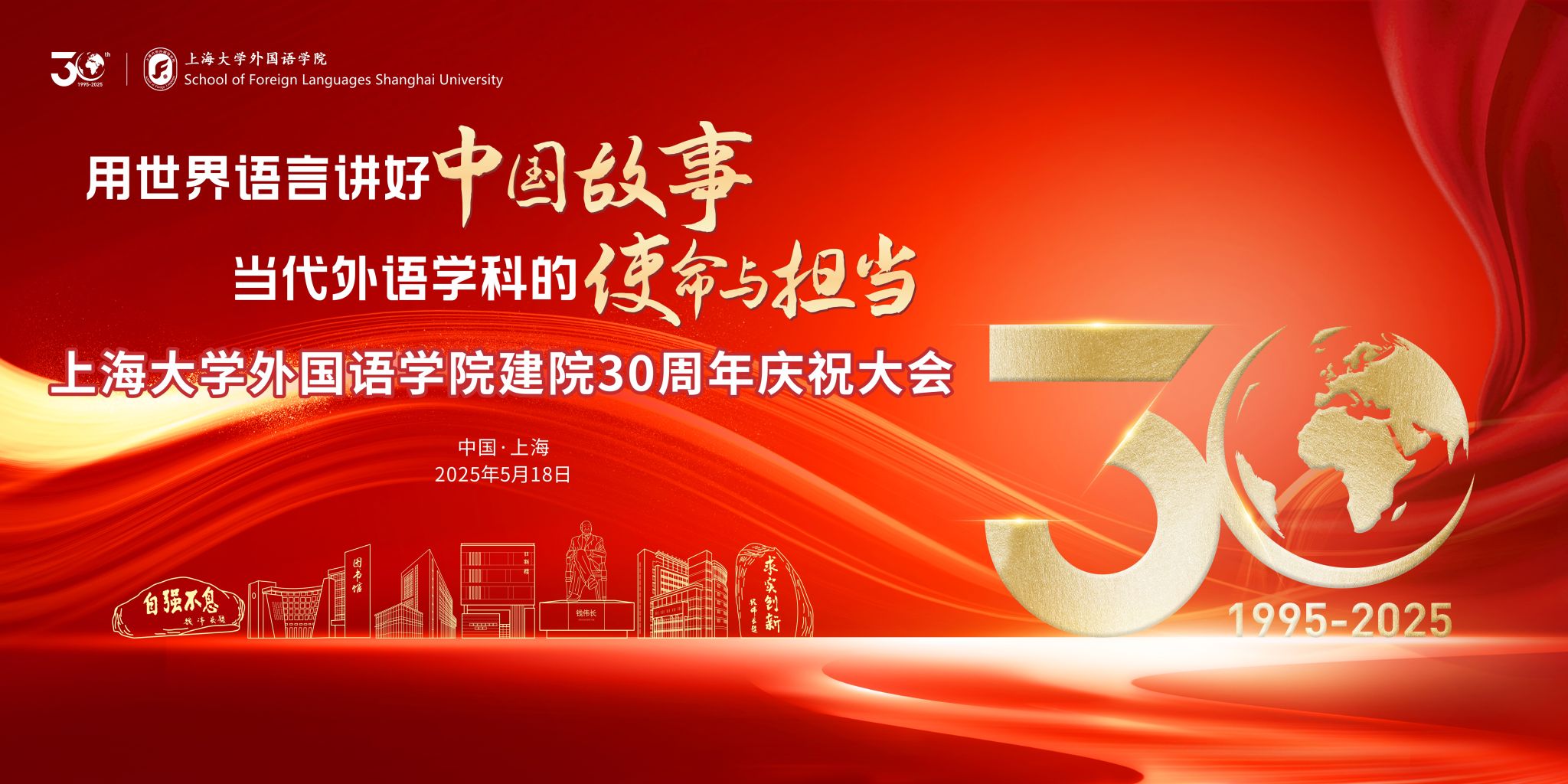 值此建院三十周年之际,为推进Beat365官网高水平大学建设,促进外语学科卓越创新人才培养实践,Beat365中文官方网站拟于2025年5月18日举办建院30周年庆祝活动,诚邀海内外校友、社会各界朋友拨冗莅临,期盼师生校友相聚外院,齐绘学科发展新卷,重温匡时岁月,同启未来新程!