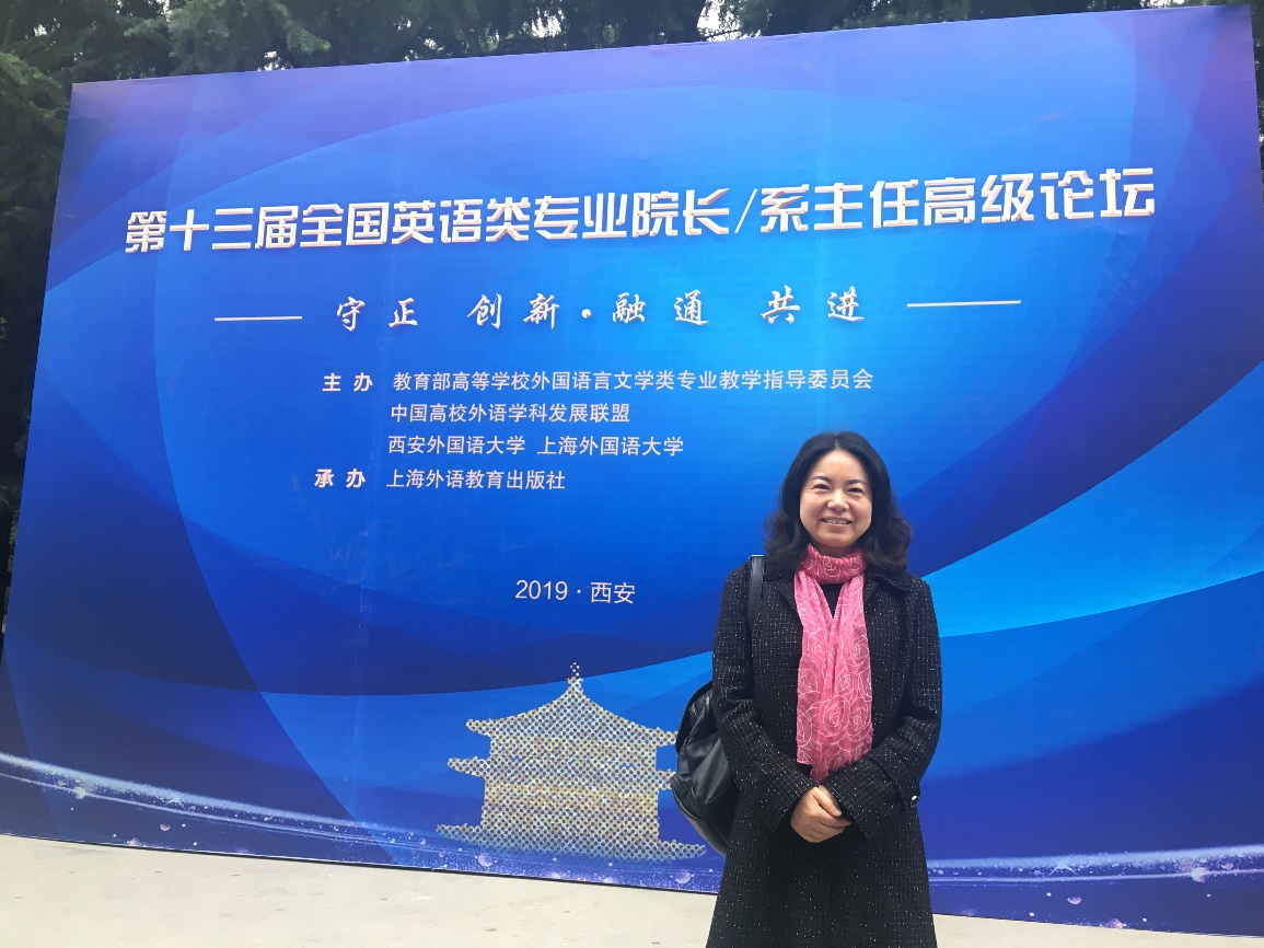 “第十三届全国英语类专业院长/系主任高级论坛”于2019年4月11日—12日在西安举办,Beat365中文官方网站主持工作副院长邓志勇教授和英语系副主任黄欣副教授应邀参加了本次论坛。