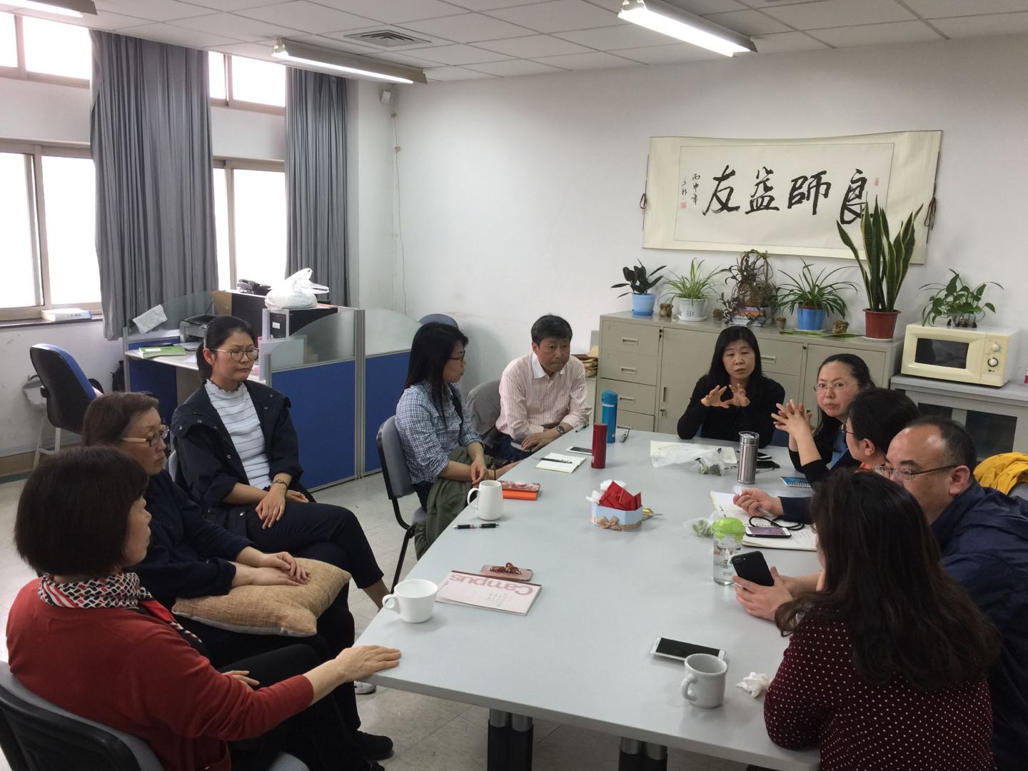 会议主要讨论了基础日语教学团队在研究性挑战性课程建设中的大纲更新,大纲与教学进度表统一问题,明确了平行班级的平时成绩比重和平时成绩的来源与过程评价统一等问题。同时还探讨了教材更新的可能性与实施办法。