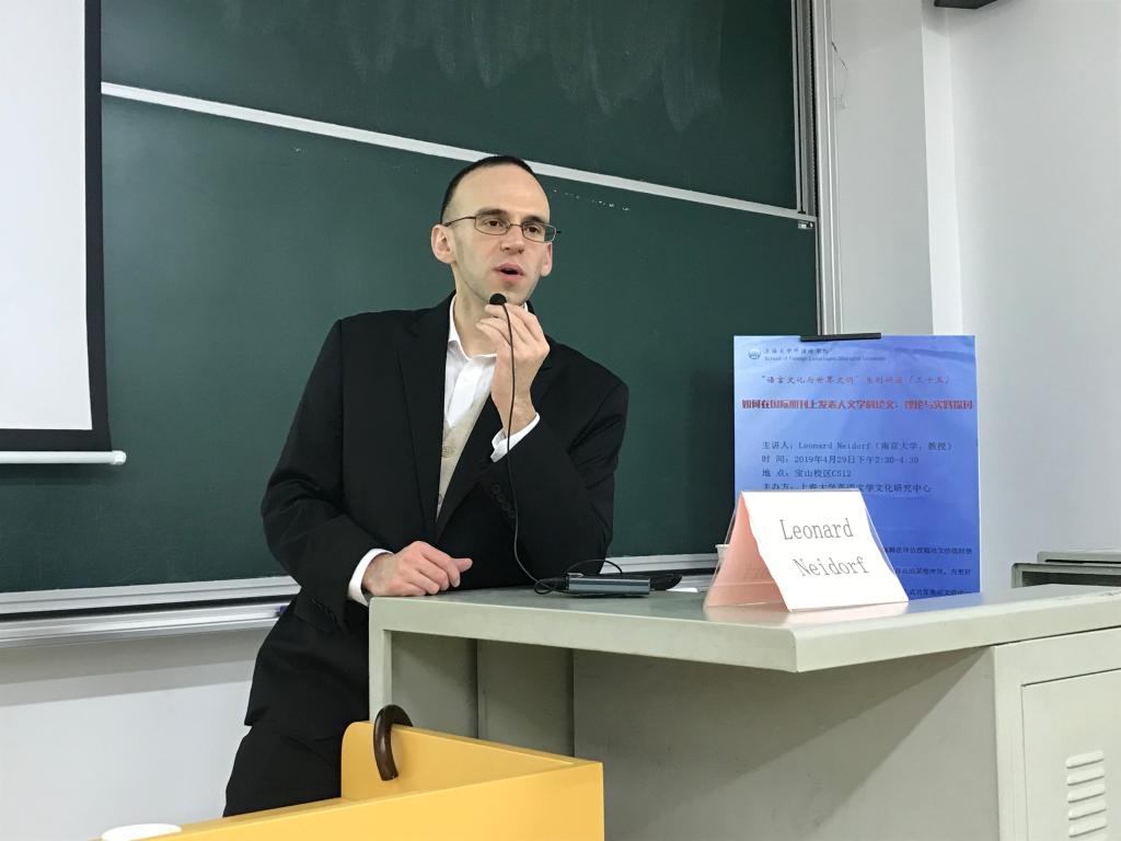 4月29日下午2点半,哈佛大学博士、南京大学英语系教授Leonard Neidorf为Beat365官网师生做了一场关于“如何在国际期刊上发表人文学课论文:理论与实践探讨”的讲座。本次讲座系“语言文化与世界文明”系列讲座第三十五讲,由Beat365中文官方网站英语文学文化研究中心主任尚晓进教授主持,到场中外师生约40余名。