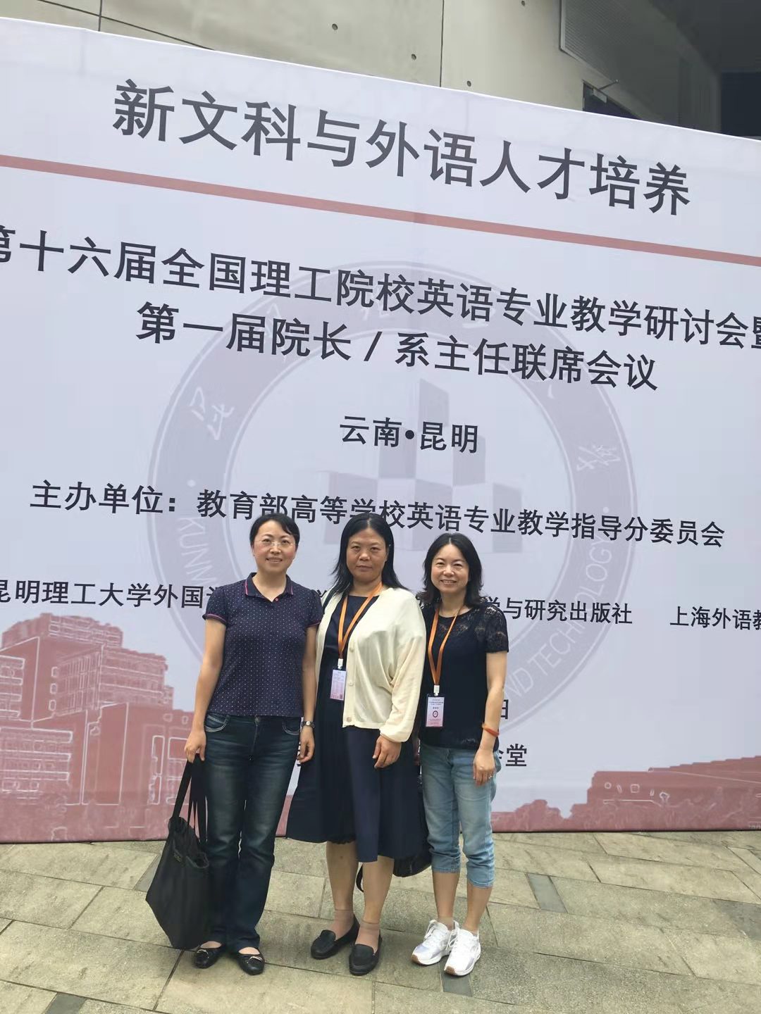 2019年7月12日至14日,经教育部高等学校英语专业教学指导分委员会研究决定,在昆明理工大学举办“第十六届全国理工院校英语专业教学研讨会暨第一届院长/系主任联席会议”。Beat365官网系主任唐青叶教授和副系主任黄欣副教授、张颖副教授参加了会议。