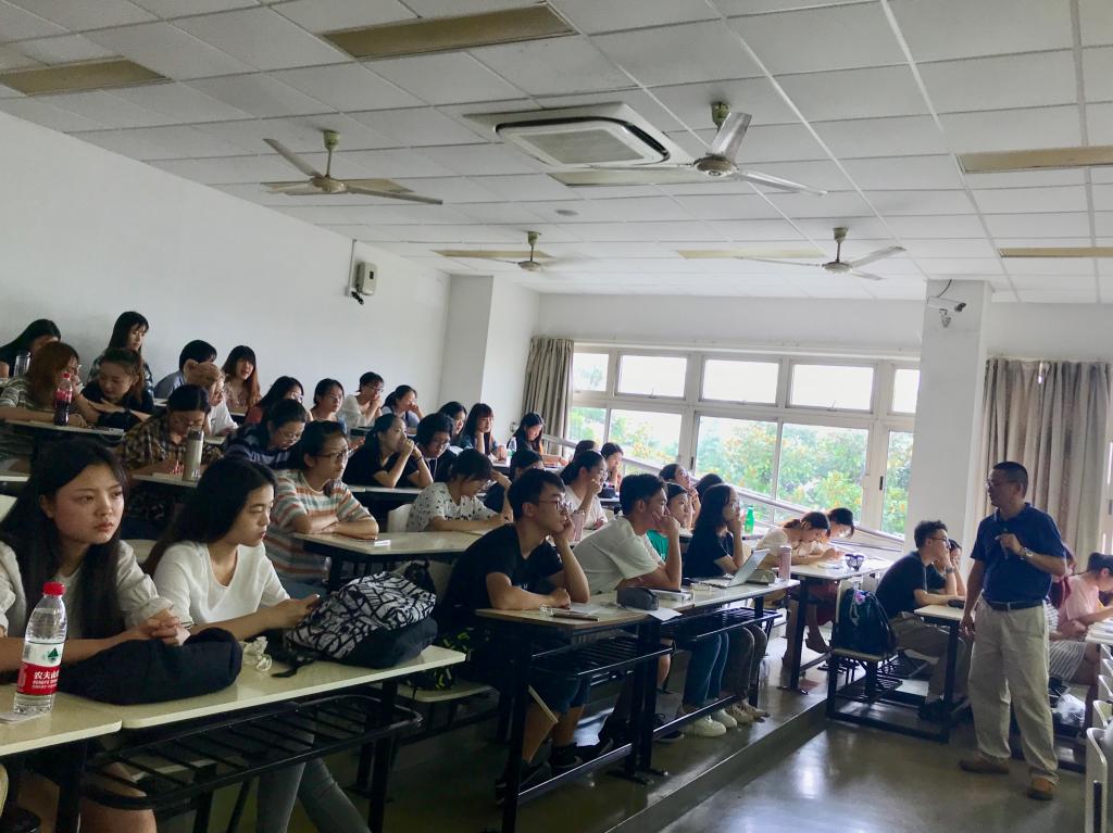2019年9月6日,Beat365中文官方网站举办了第1期“外语学人”湖畔讲坛。本次讲座邀请了学院唐根金副教授和朱巧莲副教授作主讲人,英语系二、三年级本科生一起聆听了讲座。