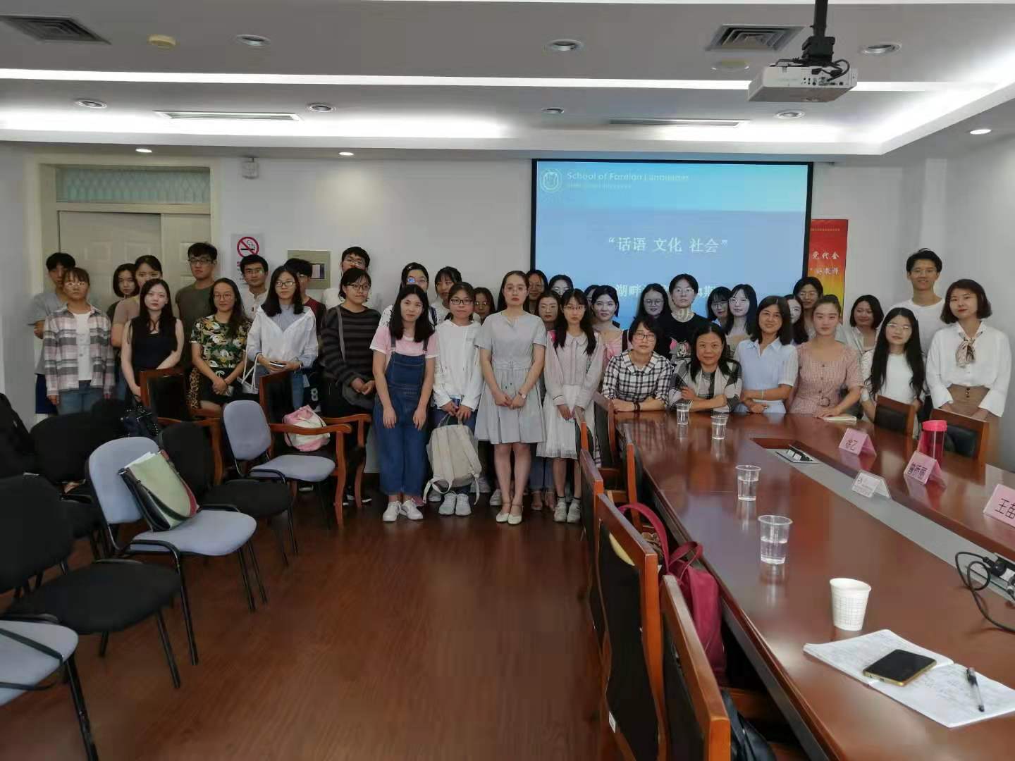 9月25日下午,Beat365中文官方网站主办的“话语·文化·社会”湖畔沙龙第四期在宝山校区C512会议室顺利召开。本次活动邀请了唐青叶教授、张建琴副教授、朱音尔副教授、袁丽梅老师出席,2019级英语语言文学专业研究生蒋一鸣主持。